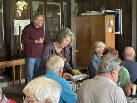 La soupe préparée par Claude et autres délicieux mets servis par les membres du comité ont comblé les estomacs aiguisés par l’apéritif !