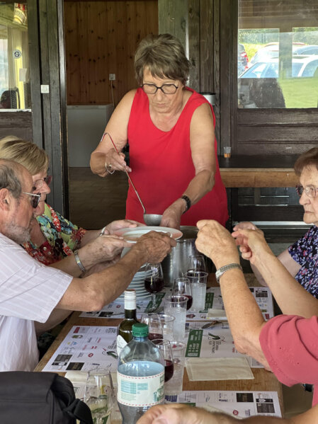 La soupe préparée par Claude et autres délicieux mets servis par les membres du comité ont comblé les estomacs aiguisés par l’apéritif !